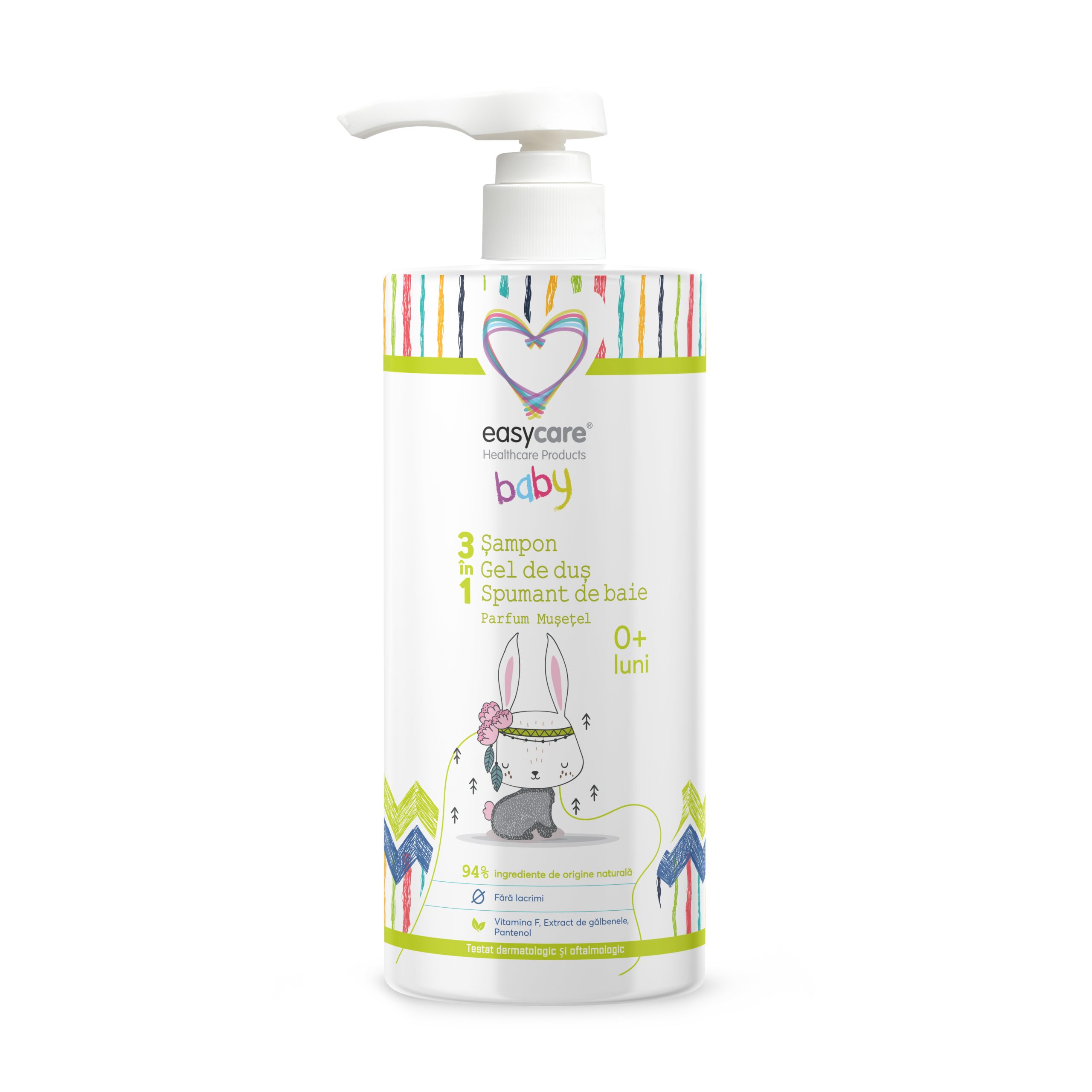 Easycare Baby 3 în 1 – Șampon, Gel de duș și Spumant de baie Mușețel este alegerea ideală pentru rutina zilnică de îngrijire a bebelușilor și copiilor.