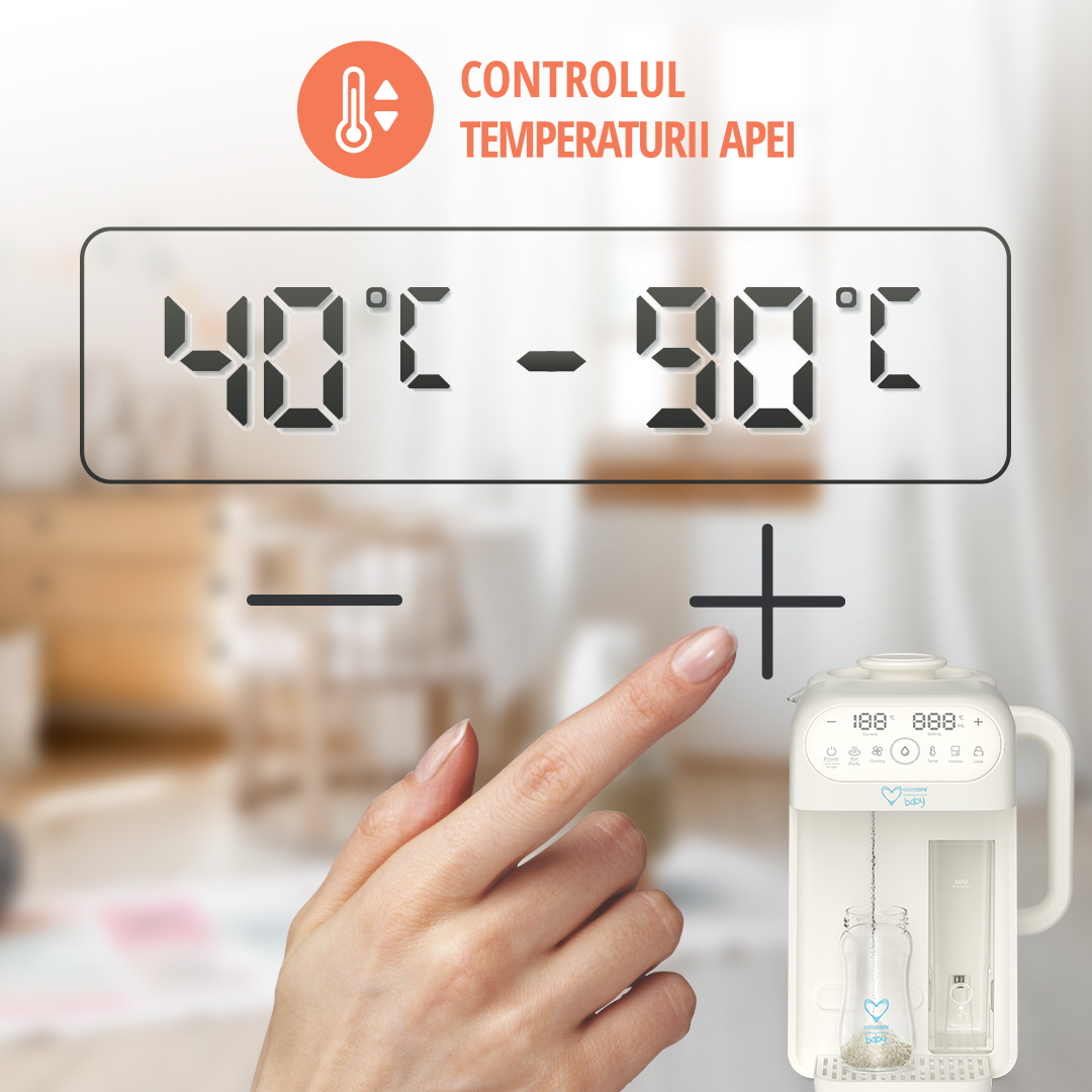 Aparatul multifunctional nu doar că atinge rapid temperatura dorită, dar o și menține constantă pentru o perioadă mai lungă. În plus, poți controla ușor temperatura apei, astfel încât să te asiguri că este perfectă pentru formula de lapte praf .