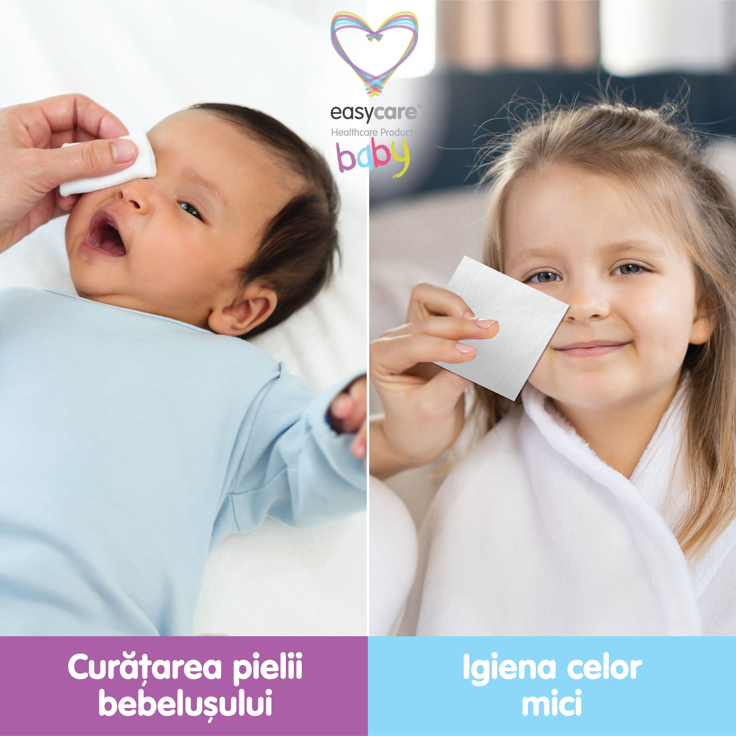 Pre-tăiate și de dimensiuni generoase, dischetele sunt practice și ușor de utilizat, ideale pentru igienizarea feței, mâinilor sau a zonelor delicate ale pielii. Nu irită și nu lasă scame, fiind potrivite pentru utilizare zilnică încă din primele zile de viață.