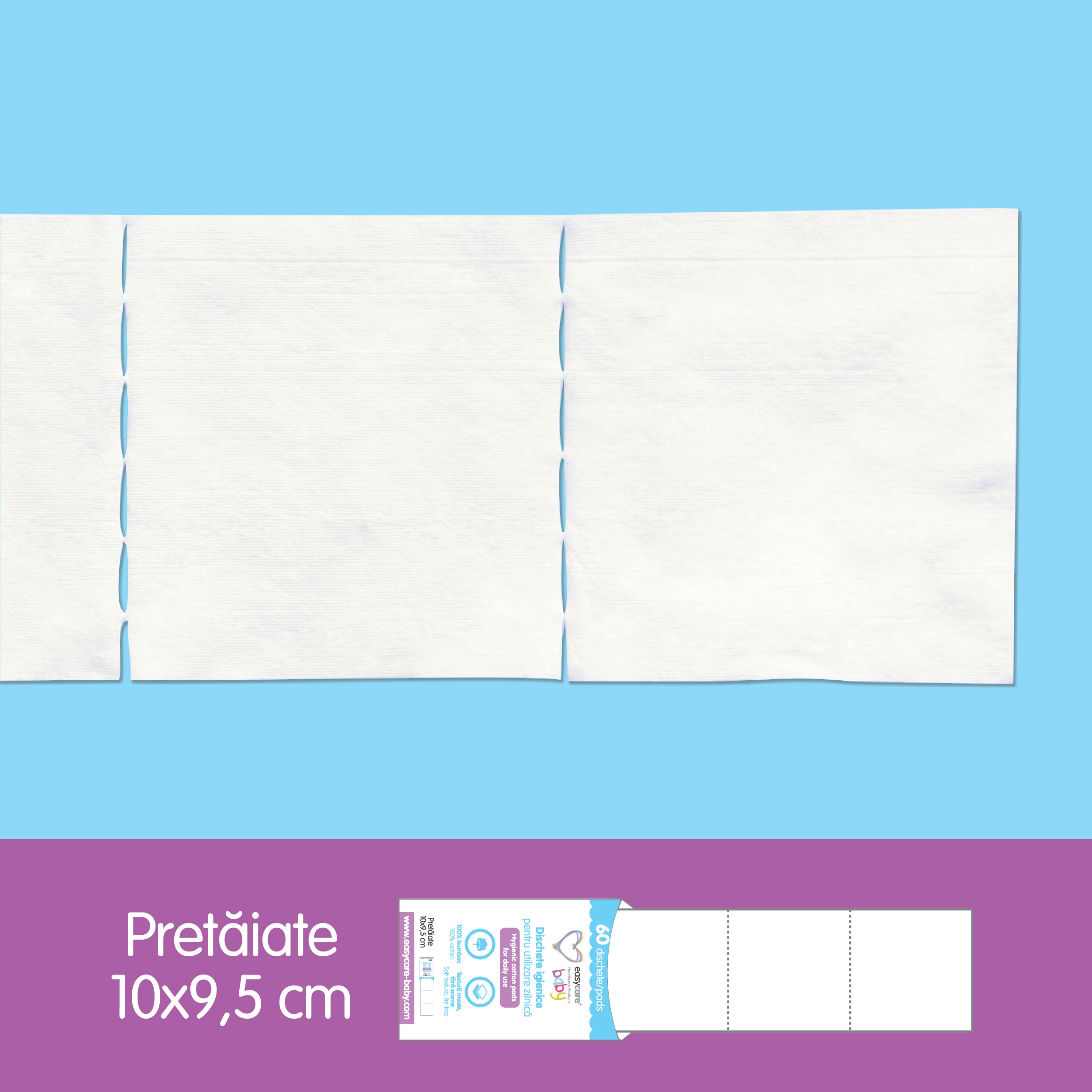 Ambalajul conține 60 de bucăți, suficient pentru o utilizare îndelungată, oferind o soluție practică și sigură pentru igiena bebelușilor și copiilor.